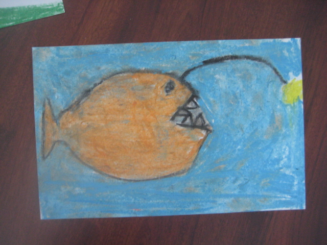 Then we read Chalk, one of my favorite 2X2 book. In this story, three friends find chalk in the playground. When they draw with the chalk on the sidewalk their drawings come to life. This is great until one of the friends draws a scary dinosaur. After reading the story, students created their own chalk drawings.